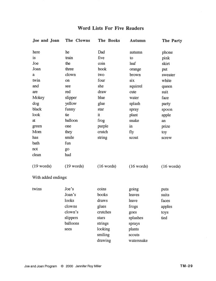 Reproducible pages for printing practice, common word lists and cards, decoding cards, spelling words, and more