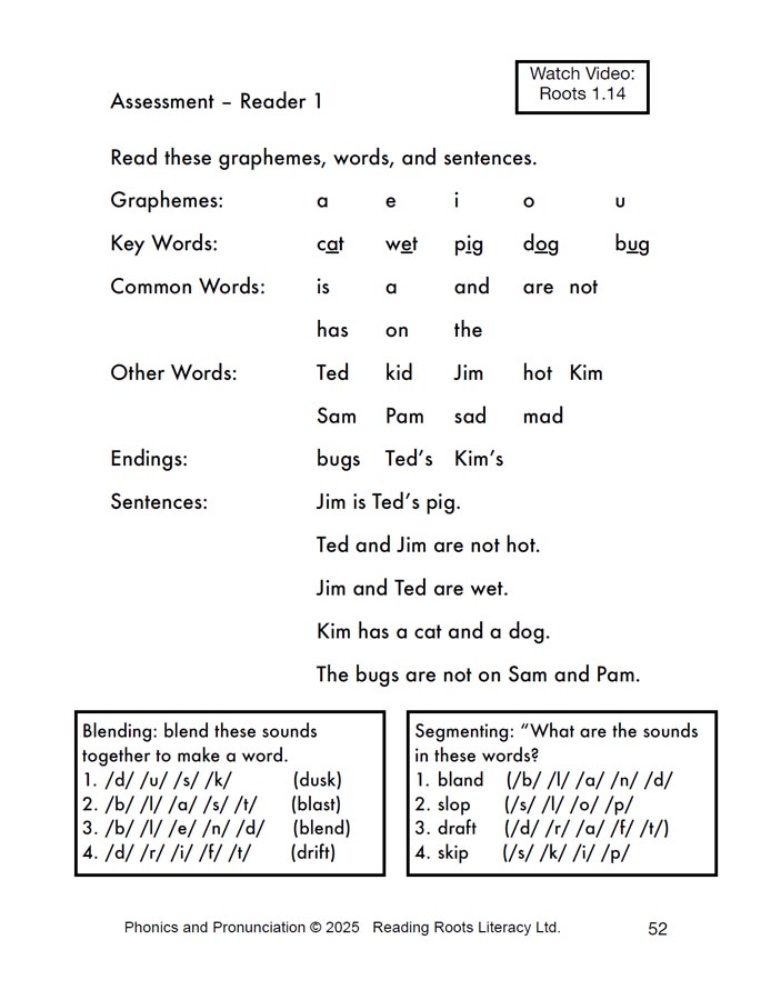 Comprehensive guide with sequences, lists of video lessons, word chains for magnetic boards, testing, spelling lists, and assessments